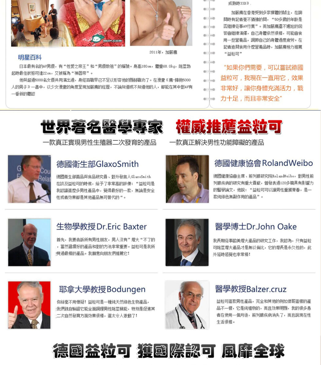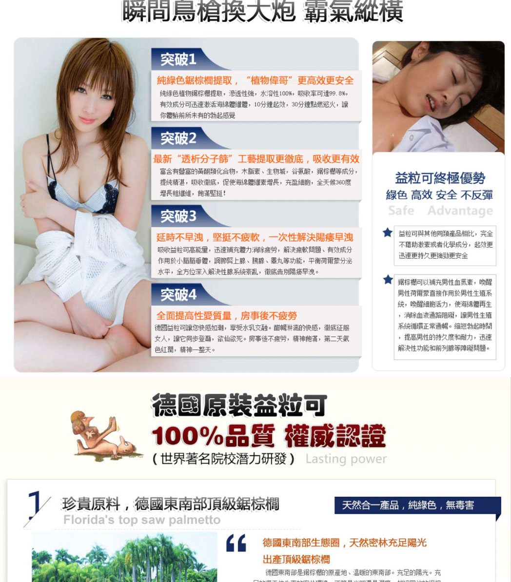 德國益粒可,全球第一款綠色植物荷爾蒙食品,純天然植物提取,安全無依賴~~~原裝進口德國益粒可具有強壯男根,增大增粗,根治早洩的效果,讓您不再是床上快槍手!!!