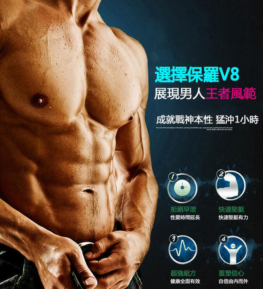 保羅V8加快陰莖海綿體組織的新陳代謝,提高持久力,增強勃起組織的反應性,舒緩射-精管、前列腺等,修複受損傷的海綿體細胞組織。保羅V8富含疲勞分解因子,能有效緩解房事過後出現的疲勞感,如酸軟、嗜睡、乏力等。解抉性疲軟,享受完美性愛。讓妳恢復男人的自信。